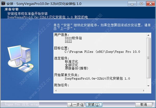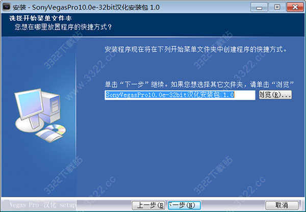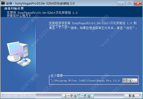 9、安装软件汉化位置目录放置C:Program Files (x86)SonyVegas Pro 10.0磁盘,修改点击浏览按钮,点击下一步