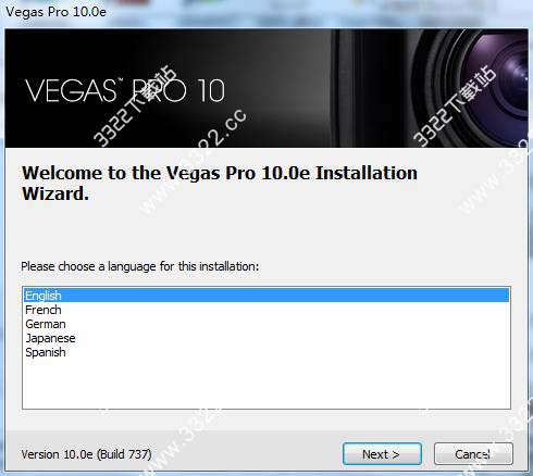 2、选择Vegas Pro 10.0的安装语言,默认语言English,可直接默认点击Next