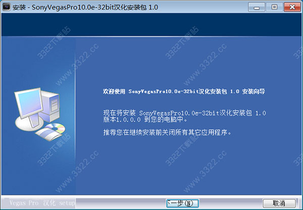 6、成功安装软件后,解压小编提供的sony vegas pro 10.0汉化安装包,双击开始Vegas Pro10软件汉化安装向导,点击下一步
