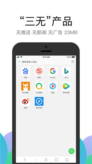 1、三无产品:无推送,无新闻,无广告,毫秒级启动