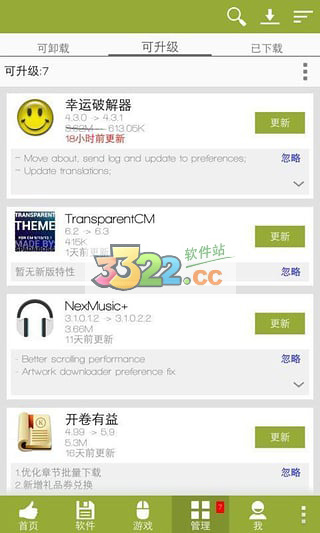 7)管理软件方便,能方便管理手机所有应用,及时提醒用户软件升级情况,保证用户第一时间下载到最新软件。