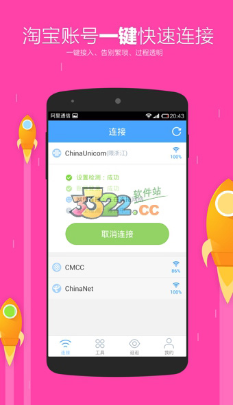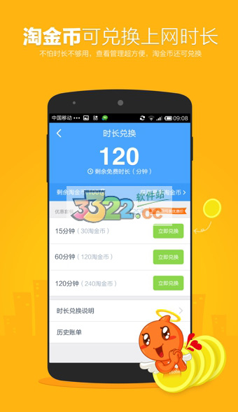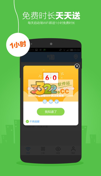 淘宝账号一键快速接入;每天可免费上网1小时;淘金币可兑换上网时长;