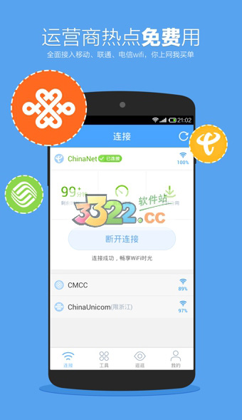 支持移动、联通、电信600万热点;后续会接入更多垂直运营商网络;