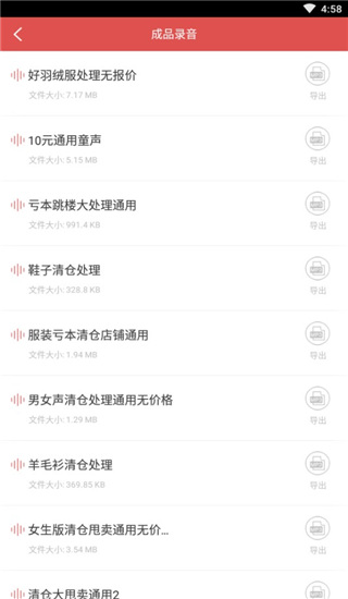 6、支持导出mp3文件:可以拷贝到U盘或者内存卡里面播放和多渠道分享配音。