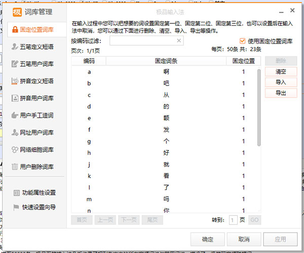 6、词组数量由原来的46000条,增至50000条,极品五笔输入法几乎收录了报刊杂志中的所有高频词组与常用词组;增设了一级简码高频联想词。