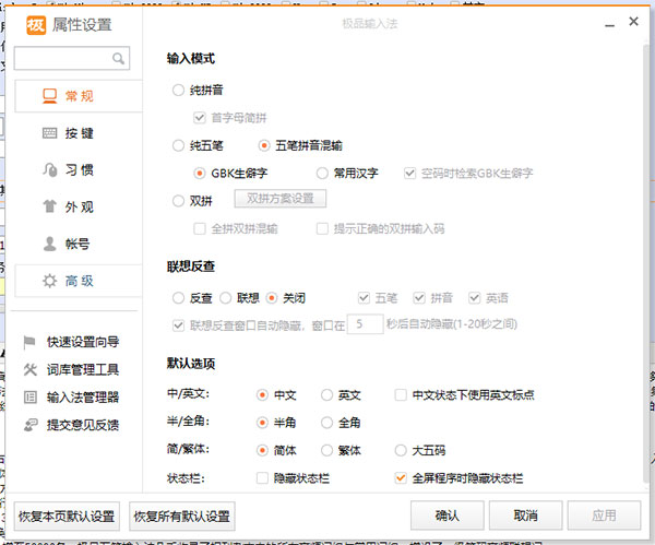 1、支持繁体输入。方法:鼠标右键点输入法状态条,选“设置…”,在扩展设置选项中勾选“启用输出繁体”。之后在使用过程中,输入简体编码,打出的是繁体汉字(简入繁出)。