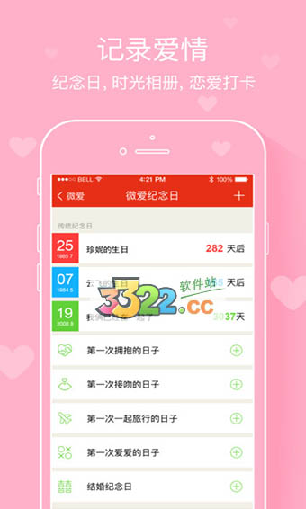 -情侣纪念日:记录情侣间每一个值得纪念的日子。