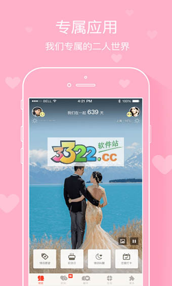 微爱app是由资深5年专注情侣应用的“情侣主页”团队倾情推出的一款手机应用。软件致力于为广大情侣的生活变得更甜蜜、更美好。目前软件深受广大情侣喜爱,几乎每隔两秒,就有一对情侣开始使用微爱,下载微爱甜蜜尽现。还等什么,赶紧与你的爱人一起加入微爱app吧。
