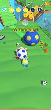 2、足球变大后,就可以一球踢飞多个邪恶猪头,你将更加快速的闯关成功。