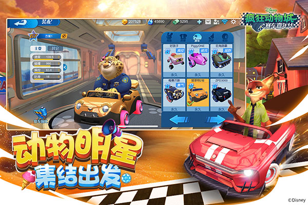 《疯狂动物城》里的众多居民和各位一起欢乐飙车,活泼的朱迪、聪明的尼克和呆萌的闪电等高人气动物明星各自身怀绝技,给你的赛车提供加成,在你的赛道上开辟出新的奇迹!这么多动物明星的加盟,肯定会让嘉年华的舞台热闹非凡,加入它们一起享受这场赛车盛世吧!
