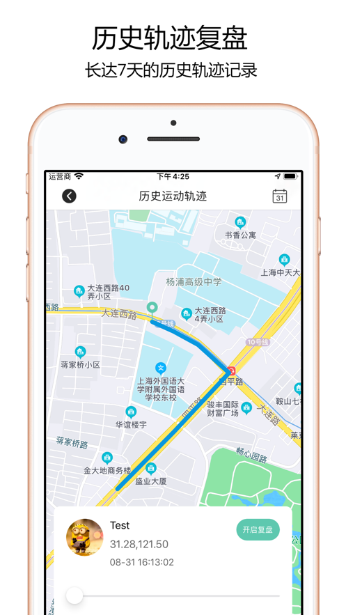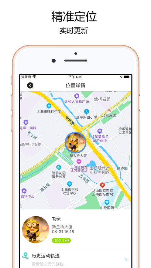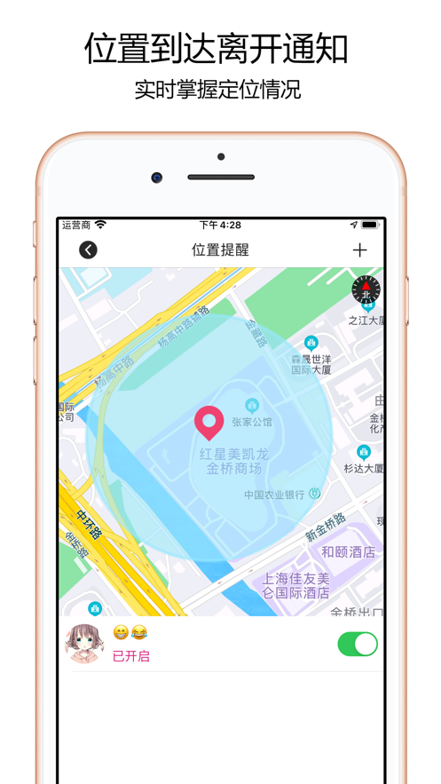 3、离开到达通知:为关心的人设置指定地点通知,轨迹查询:查看移动轨迹记录。