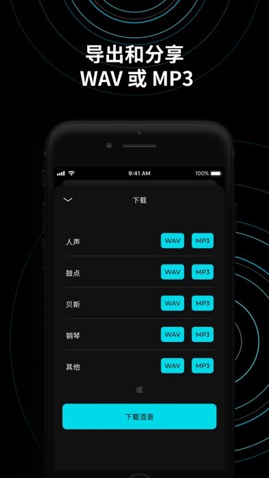 - 调整音量、改变音调、节奏,并利用我们强大的混合器导出您自己的播放曲目。
