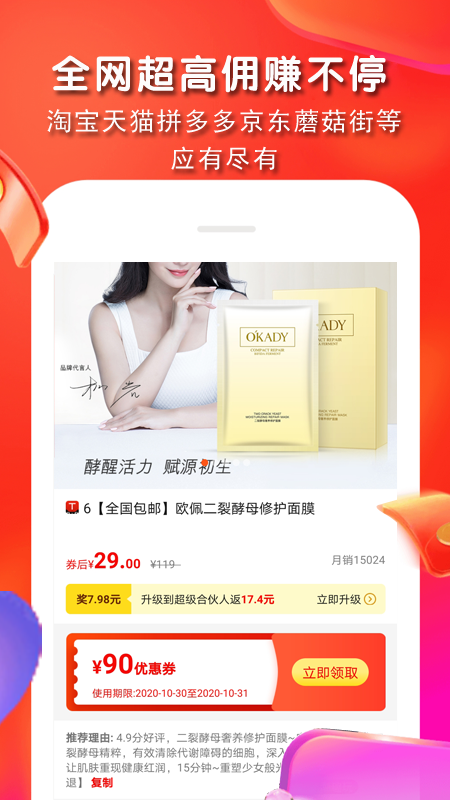 1、全网超高拥赚不停,天猫、京东、淘宝、蘑菇街等全部都有;