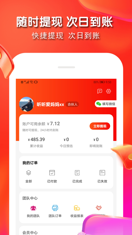3、提现容易,提现到账速度快,快捷提现,次日就能到账。