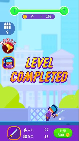 1、通过打败坏蛋你能得到金币和火力更加强大的武器,是你进行接下去任务的重要装备。
