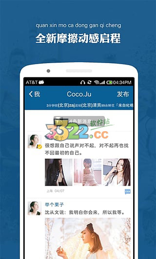 摩擦app是一款社交聊天类的手机app,是相当不错的同城聊天交友神奇,这里聚集了一票的爱好在手机上聊天交友的网友们,可能就是你附近的人,你可以和他们聊二次元、聊电视剧,你也可以和漂亮MM搭讪,或者晚上一个人寂寞的时候找找有没有可以陪伴的心灵伴侣,在手机上你还可以发布自己的动态,当你发布出去后,附近的用户都可以看到你的动态,有什么困惑和问题其他帅哥美女都将热心的帮助你。