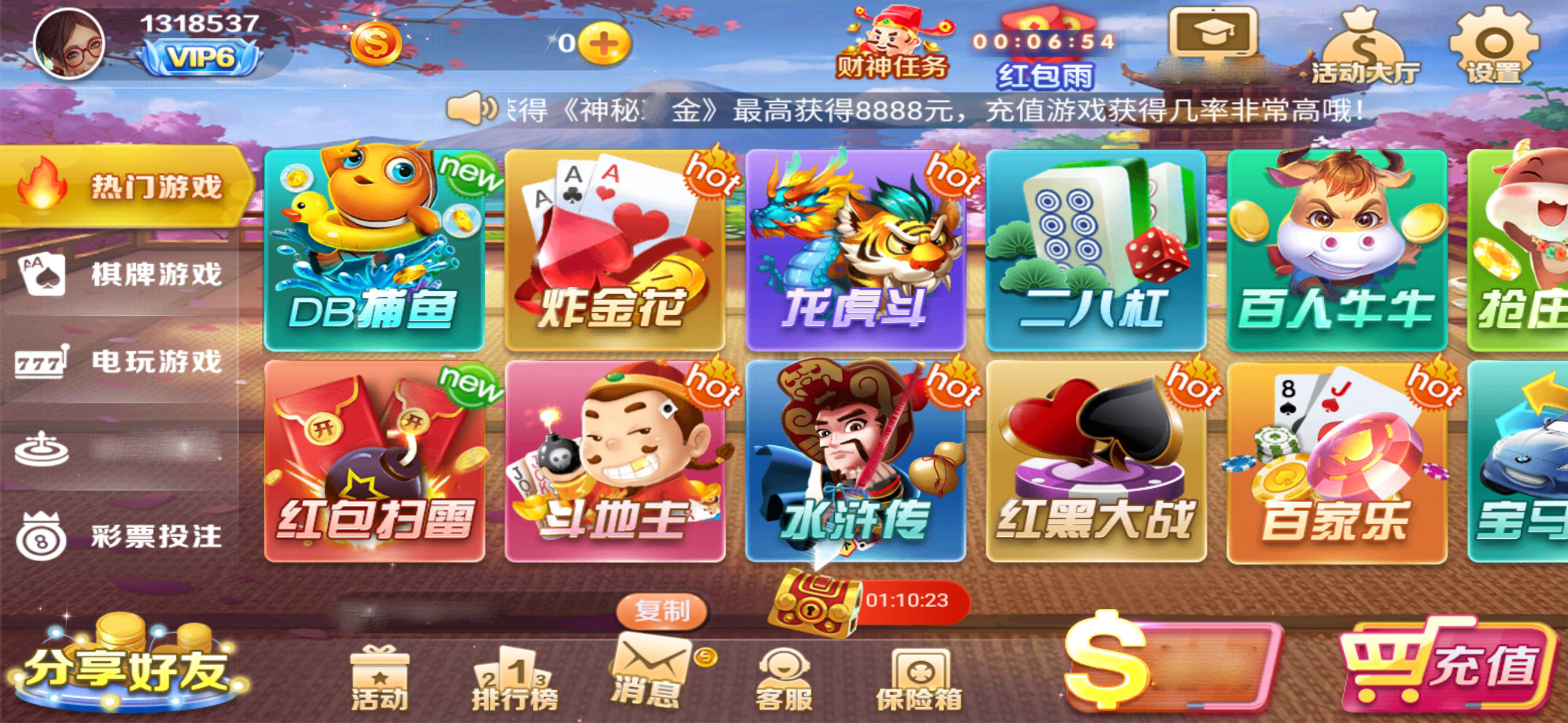 3、多种多样的棋牌玩法,任玩家选择,你想玩的这里全部都有,精彩活动不间断上线