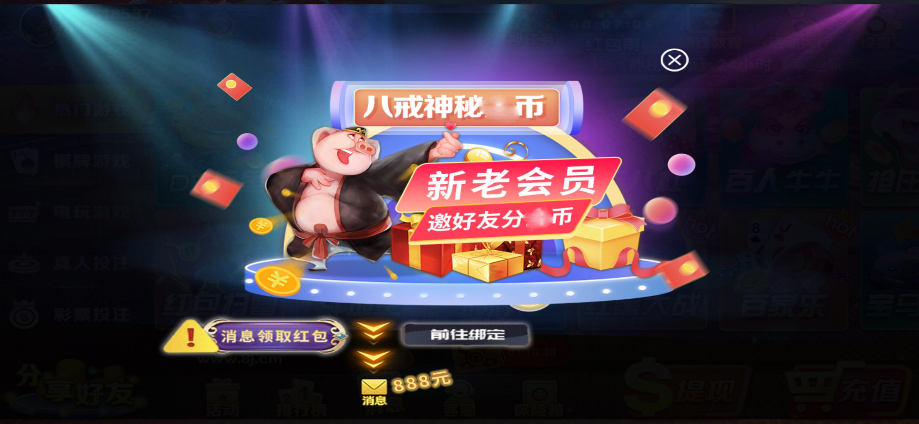 8jcom八戒棋牌是一款门槛特别低的福利棋牌游戏平台,每天都有财神送游戏币和送红包活动,在游戏大厅中点击红包雨就可以参与活动!8jcom八戒棋牌不管新老用户,登录游戏之后都是vip,绑定完成个人信息秒升vip6可以享受超多福利特权!这里有最全的棋牌游戏玩法,最吸引玩家的街机电玩项目。感兴趣的玩家赶紧下载试试吧!8jcom八戒棋牌是一款非常有意思的棋牌游戏,8jcom八戒棋牌上线就送vip6,红包雨活动让你体验感更强,最齐全的游戏玩法让你想玩什么都能满足,玩家还能自由比拼,非常的自由,全天客服在线为你服务,让你有任何问题都不用担心,新老会员上线就有超多的福利,简单的登录方式,轻松上线,没有任何限制,感兴趣的小伙伴们不要错过了!