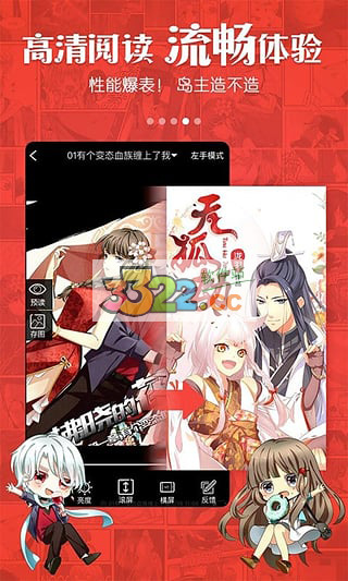 4. 接口清新,操作人性化 软件风格简约时尚,重点突出,上手容易,让你轻松进入漫画世界!新版书架更能让您轻松管理喜爱的书籍,阅读和追新不再繁琐。
