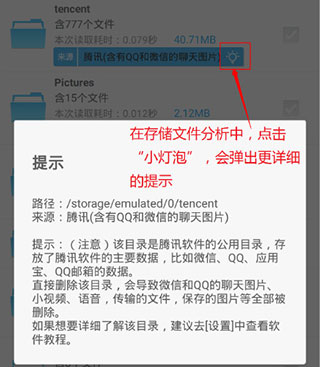 一般来说手机中的文件夹都是非常凌乱的,大多数人搞不懂那些文件夹的作用。“存储文件分析"就是为了解决这个问题的。