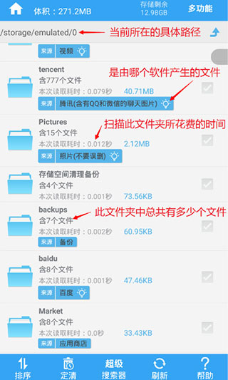2、本次读取耗时:可以判断该文件夹对手机的影响,耗时过长的文件夹,有可能会导致手机速度变慢。