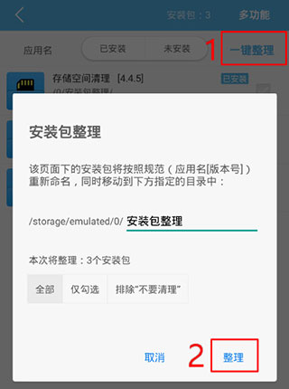 3、一键整理APK安装包:规范重命名,整理到统一目录中;