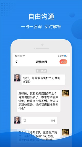 3、专业律师一对一咨询服务,解决你的法律疑问。
