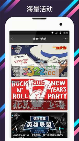 活动——各类Party、音乐节、密室逃脱、化装舞会、漫展、电竞赛事、摄影、极限运动……干掉无聊,海量活动带你飞;