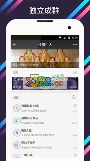 频道——各种只有我们自己懂的话题,只属于我们独特文化的梗,数千个频道等你po出自己,更可以创建自己的频道,自己去管理,有趣何必跟风;