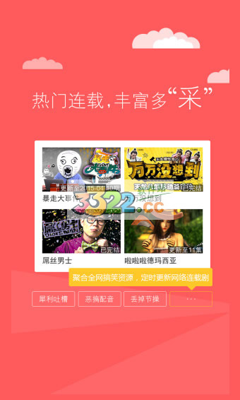 乐啊app作为一个视频集合软件,收录了包括搜狐、土豆、腾讯等全我那个最搞笑的资源,只要几个关键字你就可以搜索到全网都可以看到的搞笑视频,在休闲娱乐时刻捧腹大笑,就是我们的责任与义务。除了收录全网的高校资源外,乐啊app还独家推出了【神吐槽】、【自拍达人】、【萌宠】等特色栏目,你可以选择自己所喜欢的栏目,收看到许多你所喜欢的娱乐搞笑视频,看看别人家的萌宠都干些什么傻事,看看别人是如何犀利吐槽的。热门连载搞笑视频,实时更新,乐啊app将为你带来最新最好看的连载节目,暴走大事件,万万没想到等知名连载搞笑视频,每一次更新都将在最短的时间内带给各位用户。如果你喜欢某个网友的搞笑段子、搞笑视频你还可以在乐啊app中将他的内容收藏起来,每次更新都将为你带来最新作品。