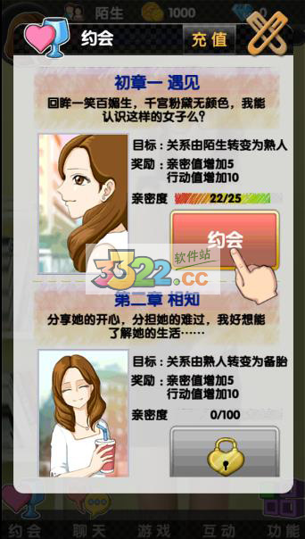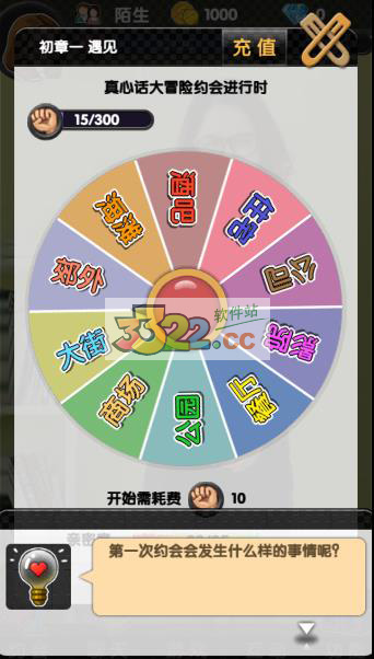 要经常带着女友去约会哦!约会是突破两人关系的重要秘诀,约会就是进行真心话大冒险活动。通过真心话大冒险轮盘,约会的地点也随之而发生变化。不同的约会地点会有不同的惊喜,会给出任何奖励。比如行动值,金币,神秘度甚至是一段和美女面对面的一小段视频。点击屏幕下方的约会就可以进入,还有一个快捷的方法,就是用钻石快速的突破两人的关系!所以去约就会慢慢的去了解你想要的她吧!