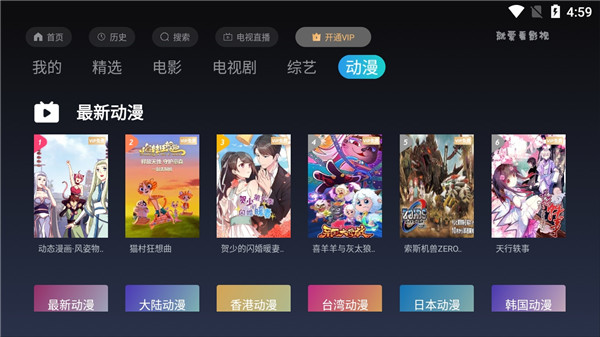 5、全部都是免费观看,分类很详细,支持全屏播放