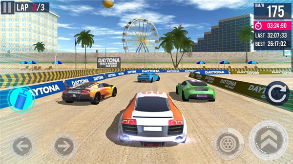 4、海滩赛车破解版中玩家将操控赛车在炎炎夏日的海滩竞速,数种不同模式让玩家身临其境感受游戏精彩,玩家可以灵活运用地图和道具,成为最优秀的赛车手