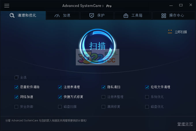 advanced systemcare pro 9是一款非常好用的系统优化工具,它的功能主要就是检测用户当前系统的问题,帮助用户修理一些错误的地方。用户使用它对自己的系统进行分析之后,就可以找出影响自己现在系统使用的地方,然后对其进行针对性的修改、优化,优化之后的系统性能和网速都会有非常明显的提升情况。advanced systemcare pro 9破解版还可以清楚电脑中的间谍软件和恶意软件,也可以帮助用户抹去自己电脑中的隐私信息,是一款比较安全的系统优化工具