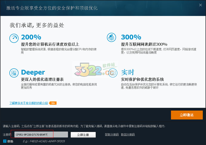 3、接着启动桌面上的快捷方式,软件未注册虽然可以使用,但是却会对用户的使用功能进行限制,在注册码这里输入“CF951-9FC08-D7170-B54F7”就可以了。不过注册码只能为用户提供一年的免费使用时间,时间到了卸载软件按照步骤重新装一次就可以了。