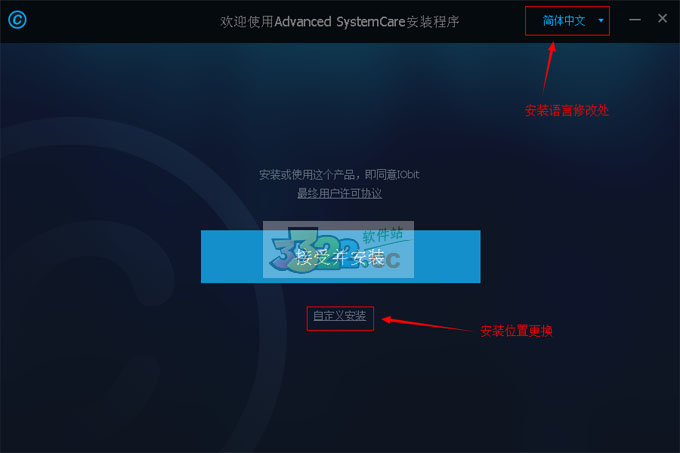 1、启动软件的安装程序之后,软件已经支持简体中文,如果进入之后不是中文的话,请在右上方进行修改,安装位置需要调整的话,点击“自定义安装”
