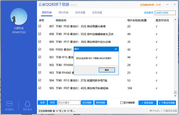 6、支持指定相册下载,获取到相册名字以后可以勾选需要下载的内容