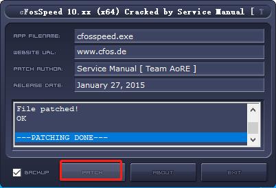 5、将Crack文件下的子文件复制到软件文件下,双击打开“cfosspeed_v10.x-11.x_x64_Patch.exe”,点击PATCH(