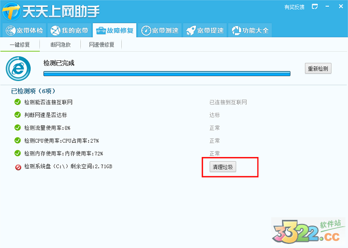 天天上网助手电脑版是一款颇受用户喜爱的上网辅助工具。通过彩虹上网助手用户可以对自己的上网宽带进行体检,以此来确定自己的宽带是否处于安全当中,还可以进行宽带的测试、宽带的适当提速及故障修复等多种功能,所以这款软件可以说是一款十分全面的上网维护工具,有需要的用户可以到此下载。