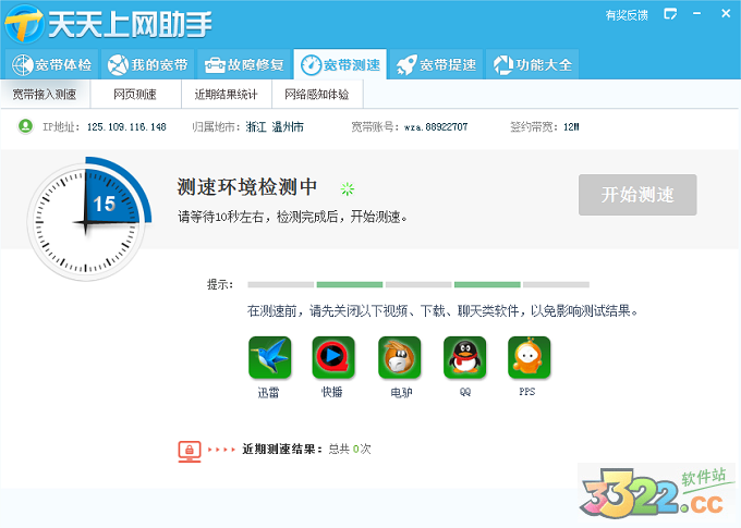 4、宽带测试 用户可以利用这个测试工具,测试出自己的宽带到底有多快,以此对自己所使用的宽带有个基本了解