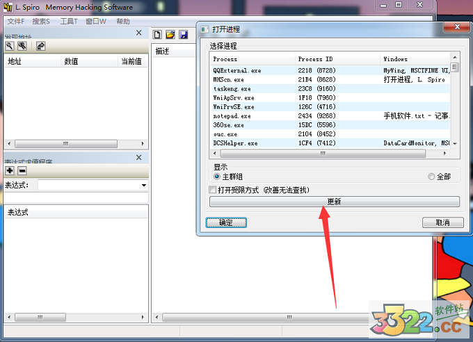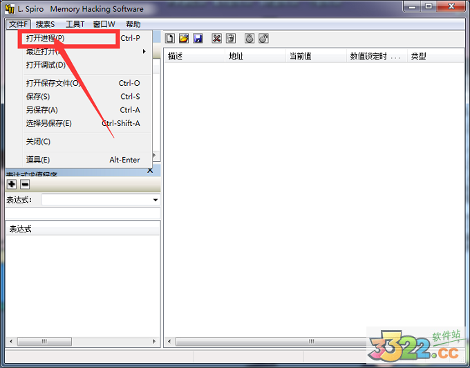 1:打开一个扫描过程,调试或黑客,按ctrl加P或直接文件选择菜单。