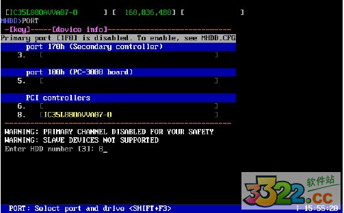 2:这时我们并没有看到什么IBM硬盘,需要我们输入port命令来选择端口