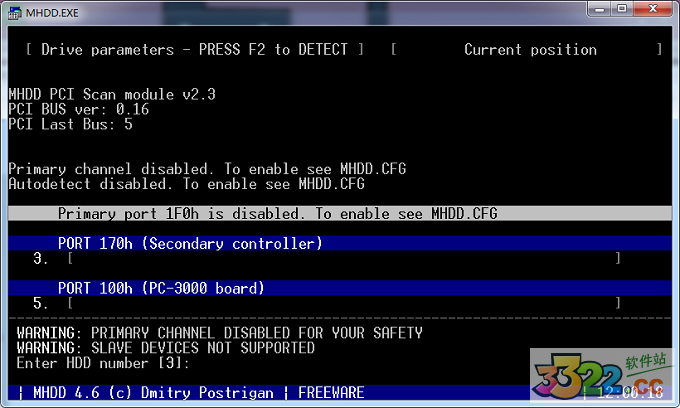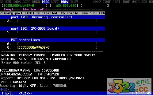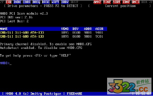 1:我们连接好硬盘后进入到DOS后运行mhdd,首先我们来看下进入mhdd4.0界面