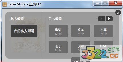 3、软件会默认打开一个音乐频道,该频道会自动播放某个风格的音乐歌曲。有“我喜欢”、“不再播放”、“下一首”和“换台”等功能。