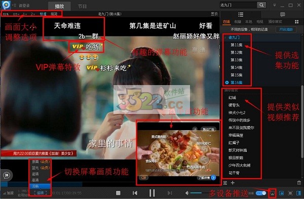 4.提供可开启关闭的弹幕功能,网络用户可为视频留言给其他后看观众,VIP会员弹幕还有特效显示;