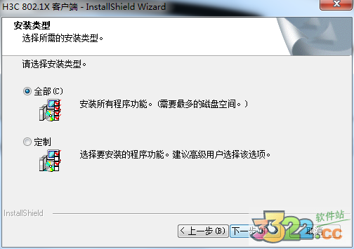 4、这里的安装类型有两种,一种是全部安装,一种是自行选择需要安装的程序功能,这里有用户自行决定,选择好之后,点击“下一步”