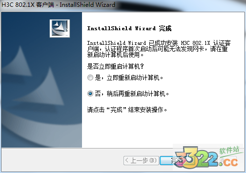 答:这是因为之前已经安装了802.1X客户端软件,安装程序首先会删除之前安装的版本,在删除完成后,需要再次运行安装程序才可以将软件安装到硬盘上。