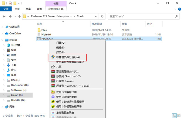 4、打开破解补丁文件夹,以管理员身份运行Patch.bat文件;