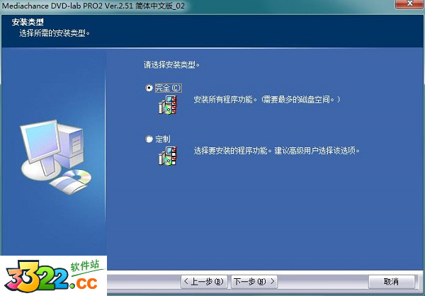 四、选择安装类型,建议勾选“完全”,专业人士可勾选“定制”自定义安装的路径和功能