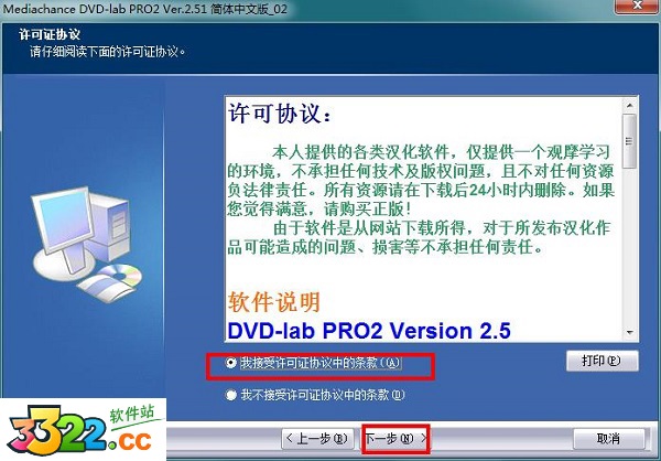 一、解压安装包,并点击“Mediachance DVD-lab PRO Ver.2.51 汉化版.exe”开始正式安装,自动弹出安装界面,直接点击下一步